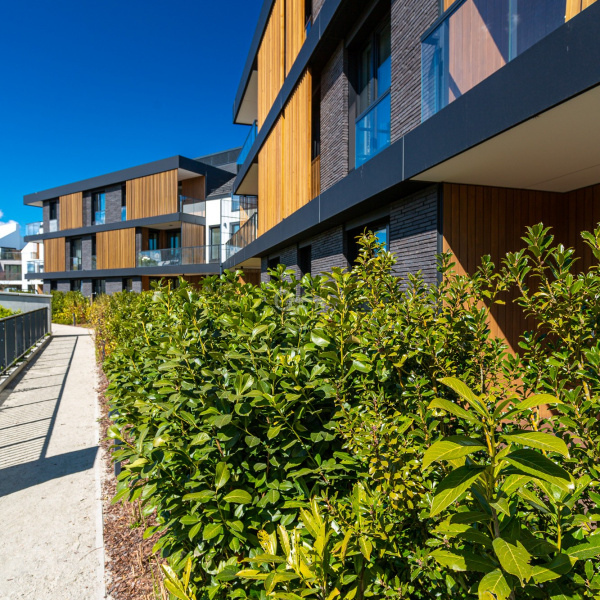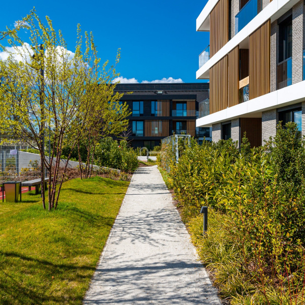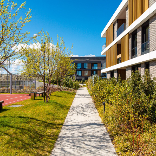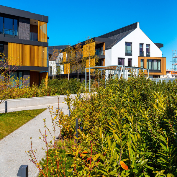 Sam projekt architektoniczny powstał w oparciu o ideę miasta ogrodu, którego starannie dobrana roślinność harmonizuje z otoczeniem. Wokół kameralnych budynków zasadzono aż 18 tysięcy roślin – drzewa, kwitnące krzewy, trawy ozdobne, byliny, pnącza, przeróżne paprocie oraz rośliny wodne – łącznie ponad 80 gatunków.
