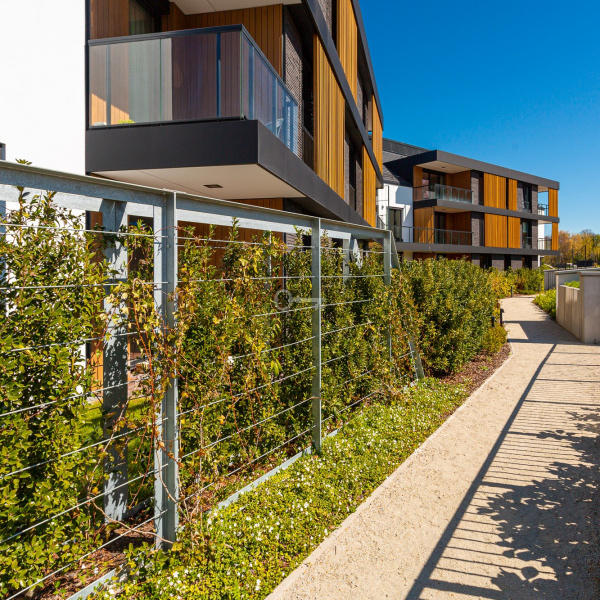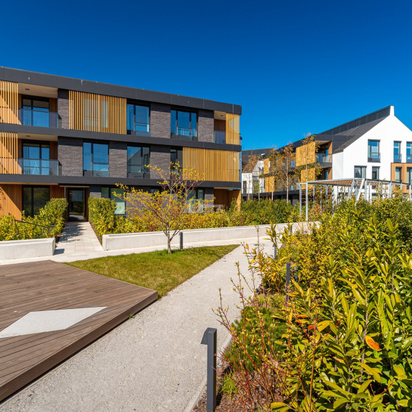 z dwuspadowymi dachami i podziemnymi halami garażowymi. Znajdziemy tu apartamenty o powierzchni od 42 do 122 m2.