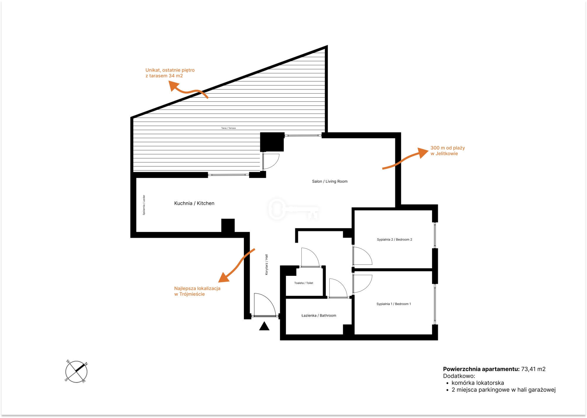 Spacer na plażę zajmie około 5 min, a nadmorską promenadą można dojść do molo w Sopocie lub Gdańsku Brzeźnie. Okoliczne parki, których łączna powierzchnia to aż 65 hektarów, sprzyjają rozwijaniu sportowych pasji.