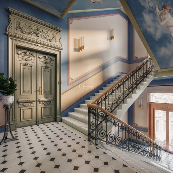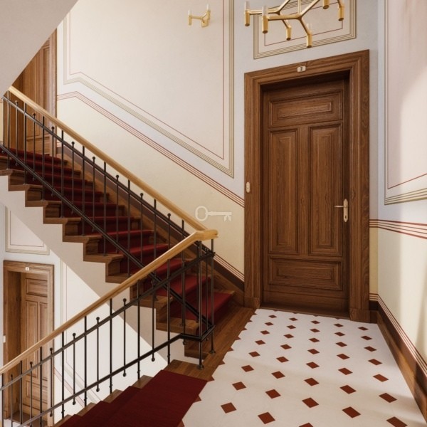 - Reprezentacyjne klatki schodowe z zabytkowymi schodami, balustradami i sztukaterią