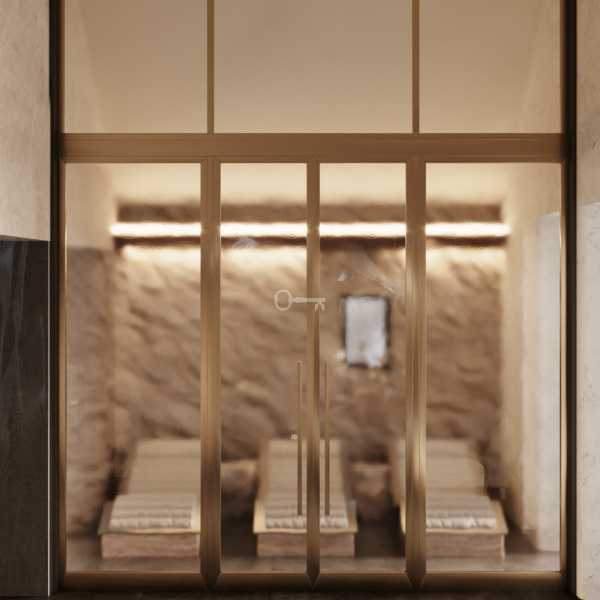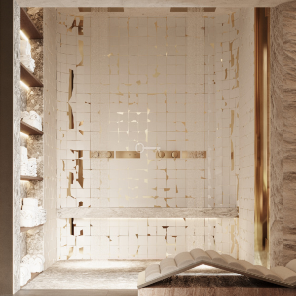 Część wspólne to kamienna powierzchnia na ścianach oraz stanowisko recepcji przypominające ogromny fragment skały. Dodatkowo mieszkańcy mają do dyspozycji komfortowe spa utrzymane w estetyce budynku z sauną oraz przestrzenią kąpielową.