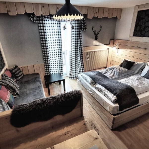 Hotel posiada 17 pokoi ,oferuje centrum odnowy biologicznej z rozmaitymi saunami oraz taras z widokiem na Dolomity.
