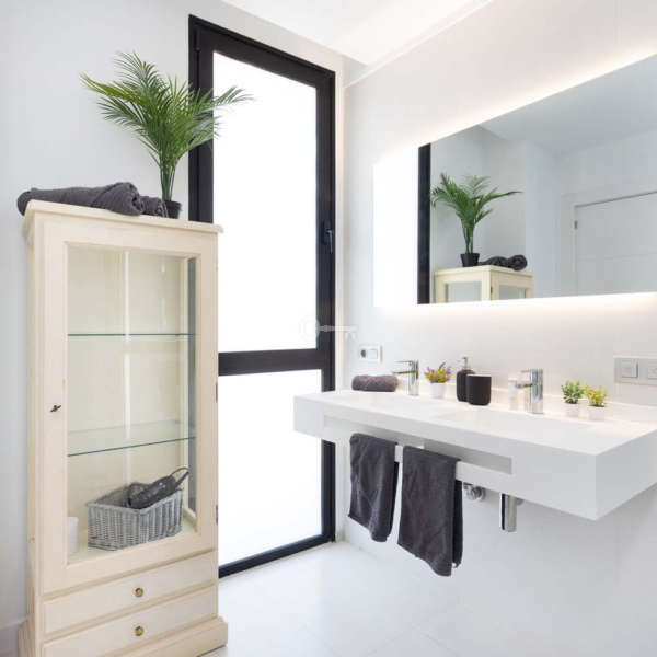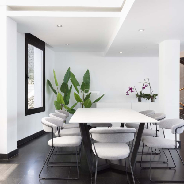 Na pierwszym piętrze lub głównym piętrze wejściowym domu znajdziemy salon / jadalnię ze wszystkimi meblami i detalami dekoracyjnymi nadającymi nowoczesny i luksusowy charakter. Otwarta kuchnia znajduje się na dwóch poziomach.