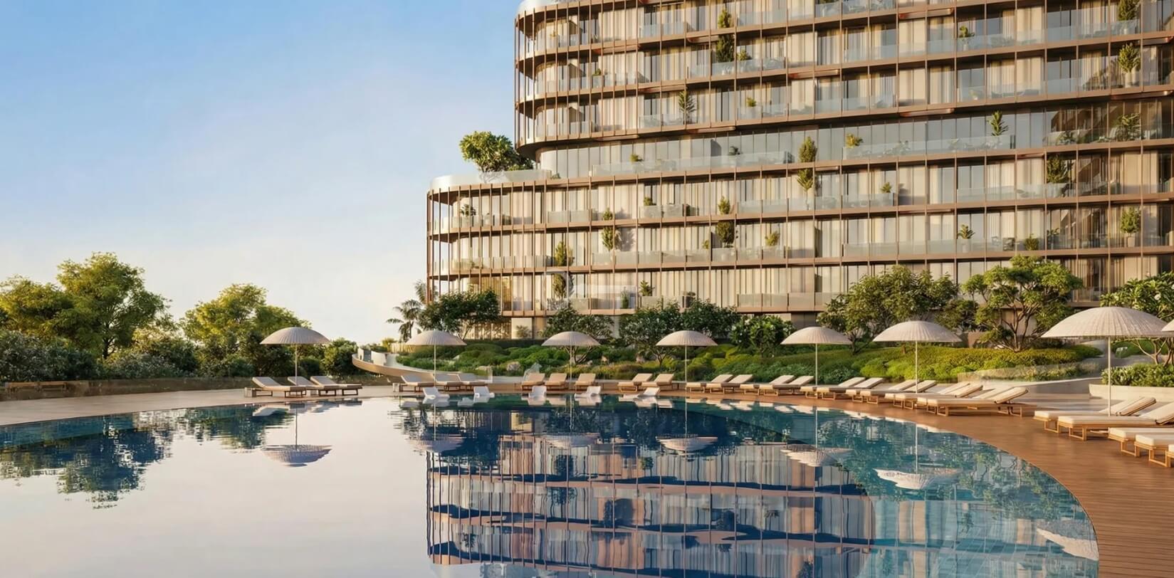 Ekskluzywny kompleks rezydencjalny położony nad samym brzegiem morza w Dubaju, oferujący spektakularne, panoramiczne widoki na ocean, plażę oraz panoramę miasta.