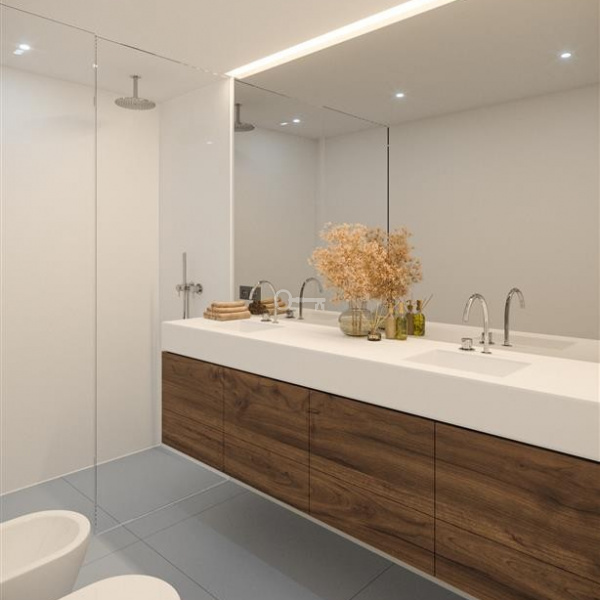 Wszystkie podłogi i strefy komunikacyjne, będą pokryte drewnem wielowarstwowym z wykończeniem Sucupira, natomiast węzły sanitarne będą wykończone najwyższej jakości ceramiką.