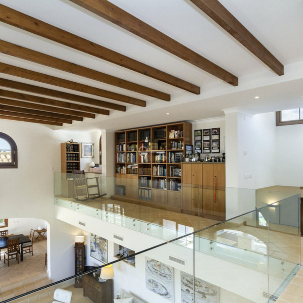 Willa oferuje pięć sypialni z łazienkami oraz dodatkowy apartament z aneksem kuchennym – idealny dla gości. Wnętrza obejmują dwupoziomowy salon z biblioteką i galerią, salę kinową z barem i systemem dźwięku przestrzennego, nowoczesną kuchnię letnią z grillem klasy premium oraz strefę wellness z turecką łaźnią, siłownią i jacuzzi.