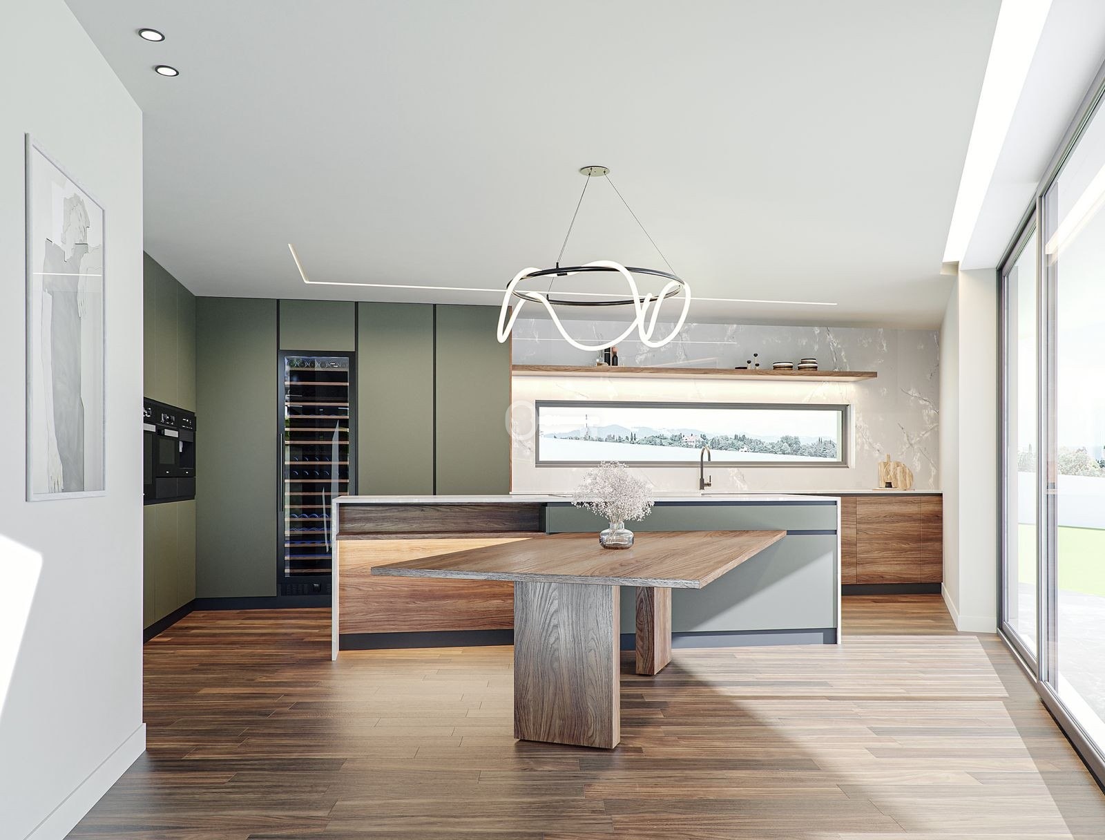 *nowoczesna kuchnia z wyspą i sprzętem Gaggenau,