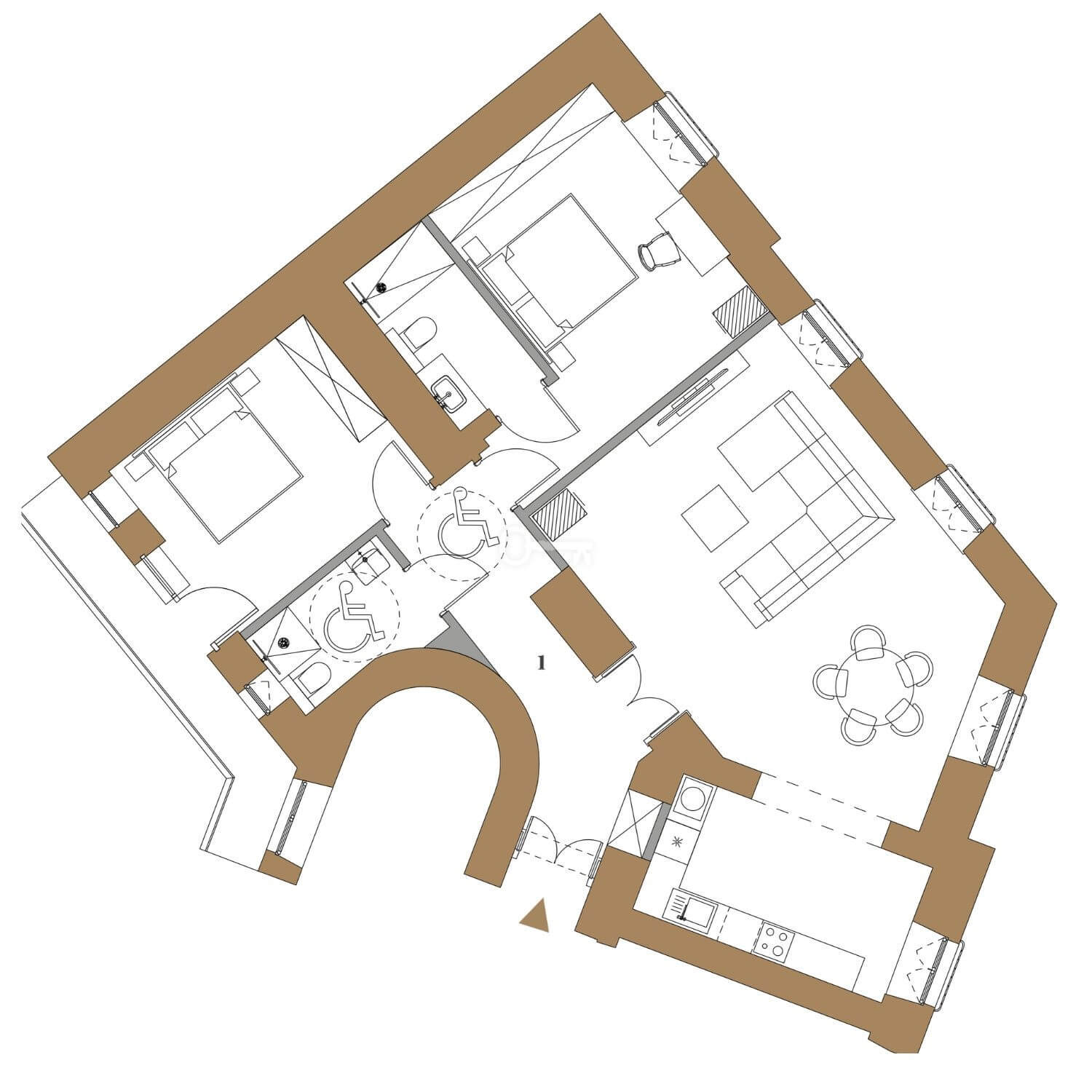 * Standard: Wysokie wnętrza, przeszklenia zapewniające doskonałe doświetlenie oraz najwyższej klasy materiały wykończeniowe (kamień, szlachetne drewno) podkreślają unikatowość każdego apartamentu.