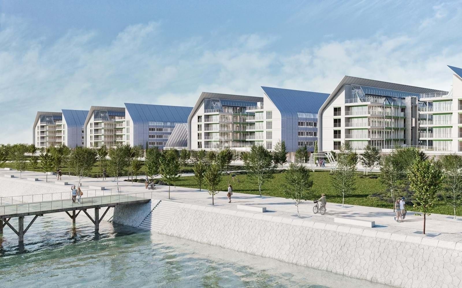 Wszystkie mieszkania mają widok na rzekę. Budynki zapewniają wysoki komfort akustyczny i termiczny oraz rozwiązania sprzyjające energooszczędności. Przestrzenie wspólne obejmują tereny zielone i miejsca do odpoczynku na świeżym powietrzu.
