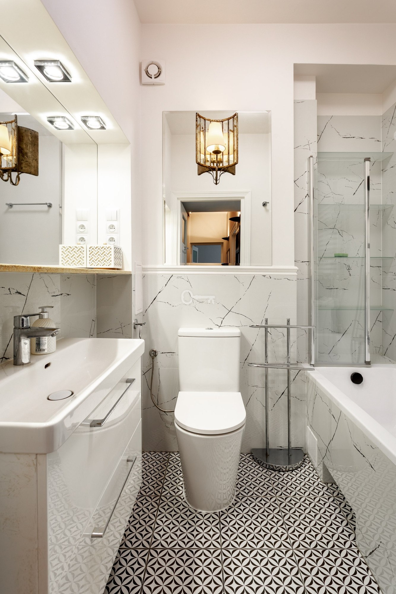 * łazienki z wanną i z funkcją prysznica.