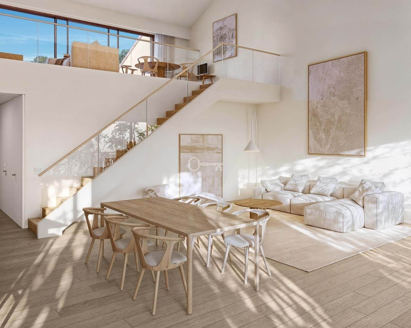 The architectural project, by the prestigious Future Architecture Thinking, features buildings with 4 units, with the following typologies: the Gardens units, consisting of ground-floor T2 and T3 units with spacious terraces and private gardens, and the Terraces units, which include duplex T2+1 and T3+1 units, distinguished by social areas with double-height ceilings, a spacious terrace, and an open-plan first floor with a panoramic solarium.
