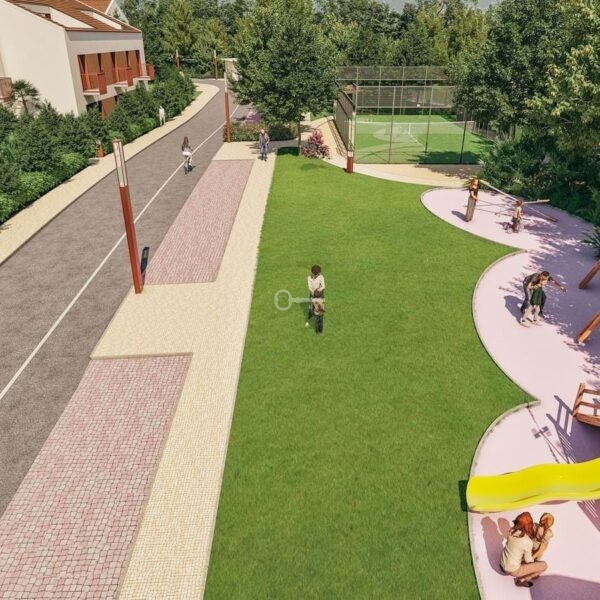 Among the exclusive amenities of the condominium are a large surrounding garden, pool, gourmet community room, padel court, fitness circuit, electric chargers, Ecopoint, gym, sauna, Bike Station, Surf Station, children’s playground, Pet Care, and concierge service with Pick a Buy.