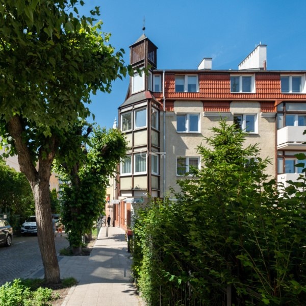 Budynek usytuowany jest w sercu nadmorskiego kurortu, w spokojnej, bocznej uliczce od gwarnego deptaka Monte Cassino. Wokół cała infrastruktura i pełen wachlarz rozrywek – sklepy, restauracje, bary, kino, teatr, kluby fitnes, etc. Na plażę dojdziemy pieszo w 5 minut, bo to zaledwie 400m, na dworzec podobnie; na rowerze dojedziemy w parę minut do Trójmiejskiego Parku Krajobrazowego. Niezależnie od potrzeb, wszystko jest pod ręką.