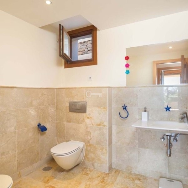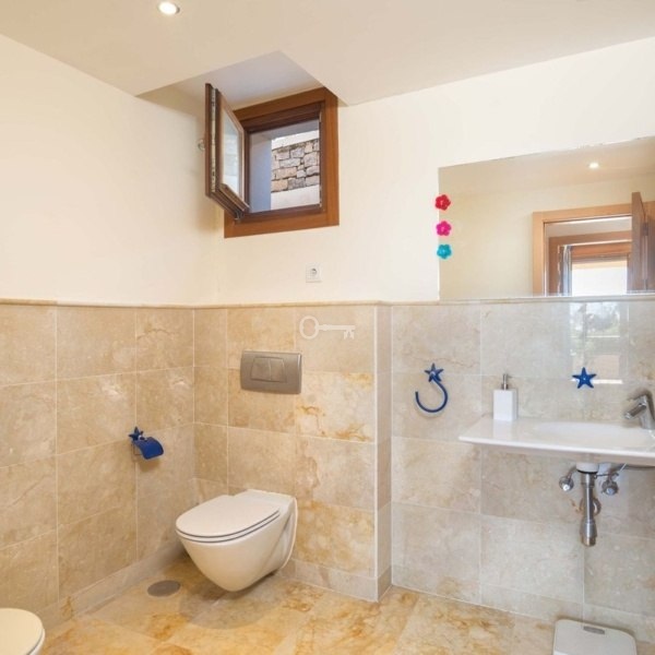 Apartament ma łączną powierzchnię 164 m2. Posiada również zadaszony taras o powierzchni 25 m2 i proporcjonalną część wspólnych obszarów o powierzchni 14,83 m2. Z apartamentu można podziwiać częściowe widoki na morze i wspólny ogród z basenem.