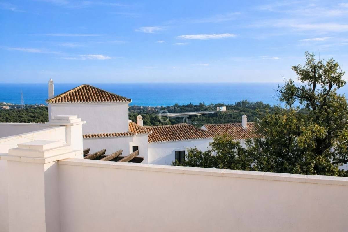 Beautiful 2 Bedroom Duplex Apartment in Pueblo Los Monteros South Facing with Panoramic Sea & Mountain Views This fantastic two bedroom, two bathroom first floor duplex apartment, built in 2009, is located within the sought-after gated community of Pueblo Los Monteros. Offered fully furnished, the property enjoys generous interior space, excellent natural light and impressive outdoor areas. The main level features a spacious lounge and dining area with four windows, allowing an abundance of natural light throughout. Patio doors lead to a large south-facing terrace, partially shaded by a mature olive tree, creating the perfect setting for outdoor dining or relaxing in privacy. The fully fitted kitchen is equipped with all electrical appliances, including cooker, washing machine, dishwasher and fridge freezer. On the upper level, both bedrooms are generously proportioned. The master bedroom features a king-size bed and access to a private terrace boasting panoramic sea and mountain views. The second bedroom offers twin beds and ample storage. Both bedrooms, along with the lounge, benefit from air conditioning. The property is set within a secure gated complex with beautifully maintained communal areas, a large communal swimming pool and underground parking. The build size is 137 m² with an additional 65 m² of terraces. This is an excellent opportunity as a permanent residence, holiday home or investment property in one of Marbellas most desirable residential areas.
