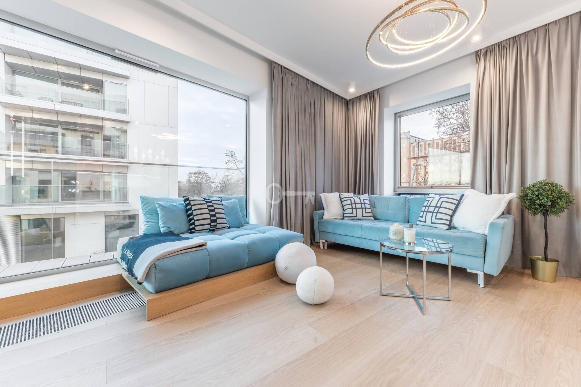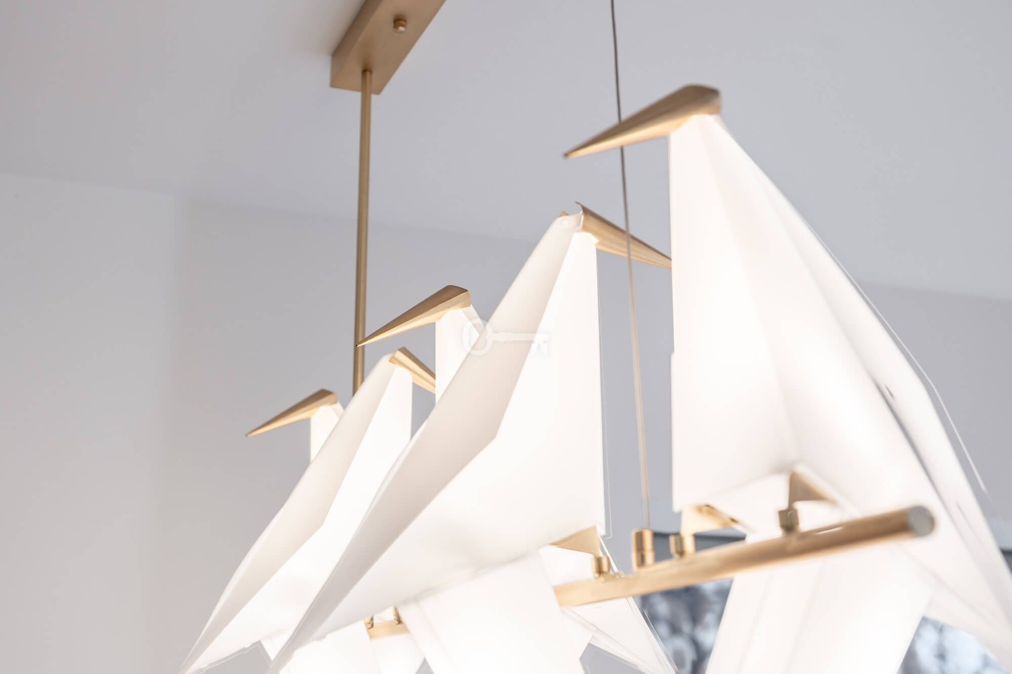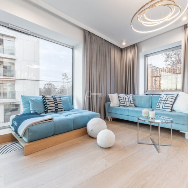 Apartament został wyposażony w zaawansowany system automatyki budynkowej marki Ampio, zapewniający wygodne i intuicyjne zarządzanie przestrzenią. Za pomocą jednego dotknięcia można sterować oświetleniem, roletami oraz temperaturą w poszczególnych strefach, a zaprogramowane sceny świetlne pozwalają natychmiast dopasować atmosferę wnętrza do nastroju i potrzeb domowników.