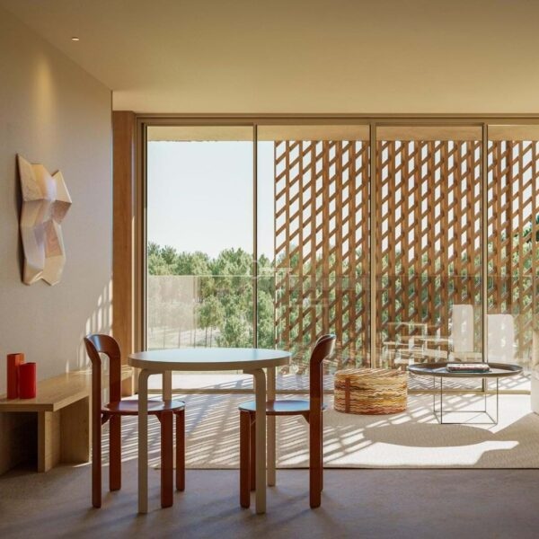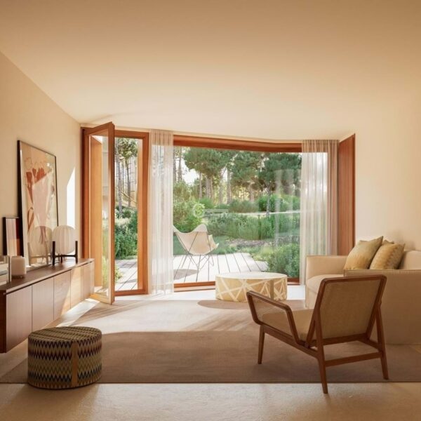 The architectural project of the apartments is signed by Atelier Bugio João Fávila Menezes, reflecting a contemporary approach that is highly sensitive to the natural context of the Aroeira pine forest. The architecture prioritises integration with the landscape, fluid circulation, natural light and a balanced relationship between built form and nature, creating an atmosphere of tranquillity and wellbeing.