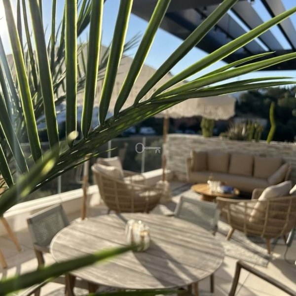 Po wejściu do przestronnego korytarza po lewej stronie znajduje się dyskretna pralnia z dużą ilością miejsca do przechowywania pościeli, a także pralką i suszarką. Stąd schody prowadzą na imponujący taras na dachu, gdzie można cieszyć się słońcem przez cały rok i podziwiać zapierające dech w piersiach widoki na Morze Śródziemne, góry i pole golfowe.