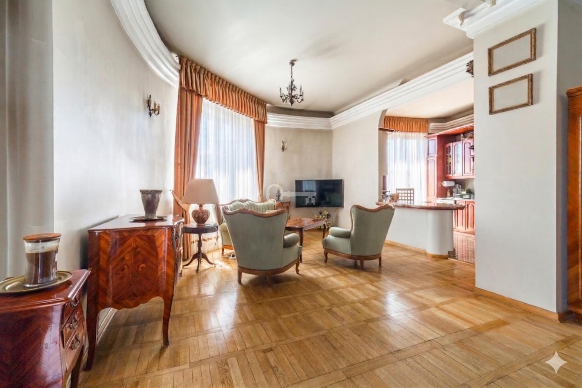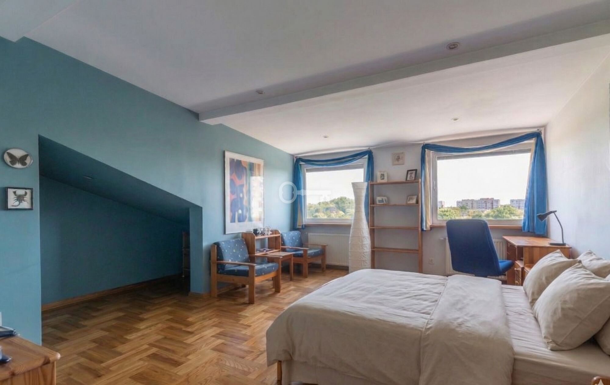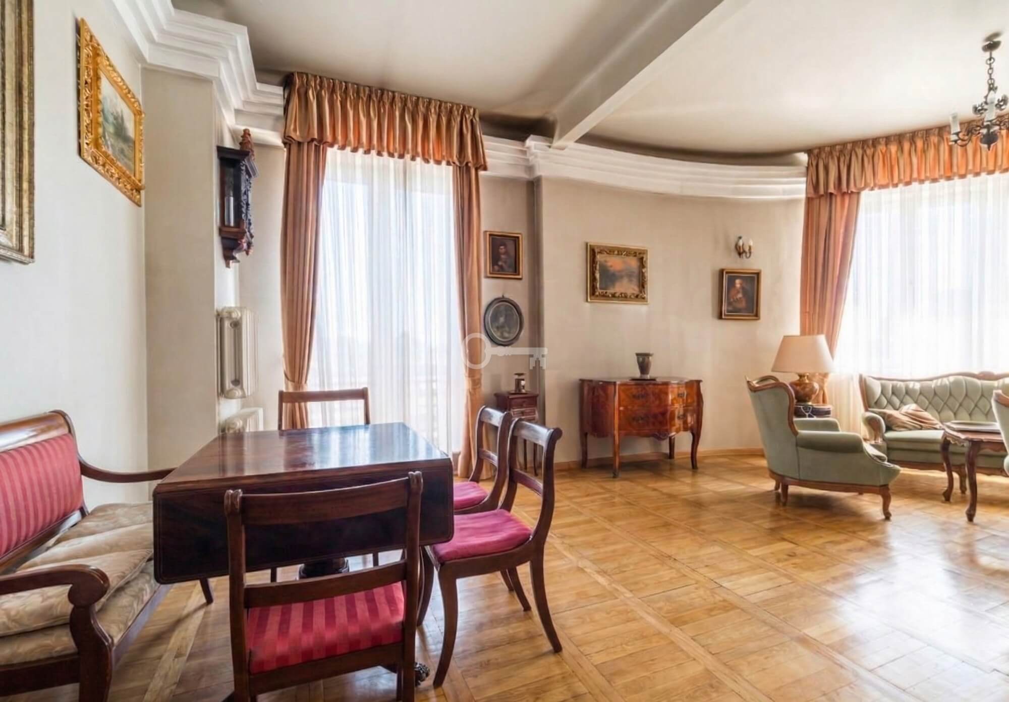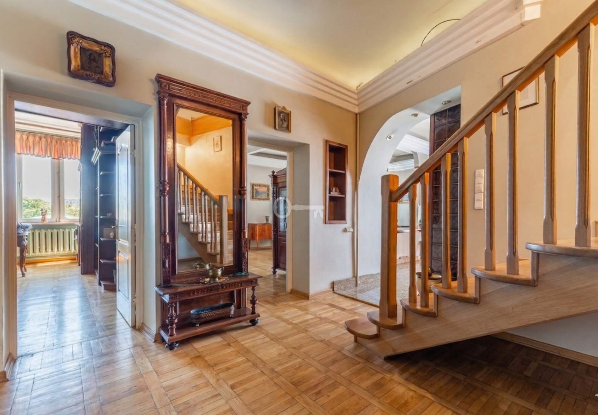 Przestronne, dwupoziomowe mieszkanie wykończone w klasycznym stylu, z dużymi oknami i widokiem na zieleń Dolnego Mokotowa. Przemyślany rozkład pomieszczeń zapewnia komfortową strefę dzienną na pierwszym poziomie oraz prywatną część sypialnianą na drugim poziomie. Dodatkowo poziom drugi został w pełni wyposażony w klimatyzację, co zapewnia komfort nawet w najcieplejsze dni. Aranżacja części korytarza na wewnętrzny przedsionek pozwoliła na funkcjonalne powiększenie przestrzeni mieszkalnej.