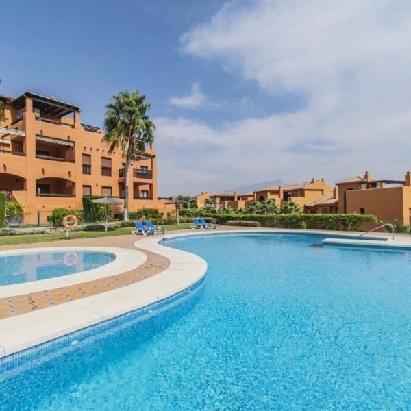 Położony na ekskluzywnym osiedlu z całodobową ochroną, czterema odkrytymi basenami, podgrzewanym basenem, siłownią, kortem do padla itp.