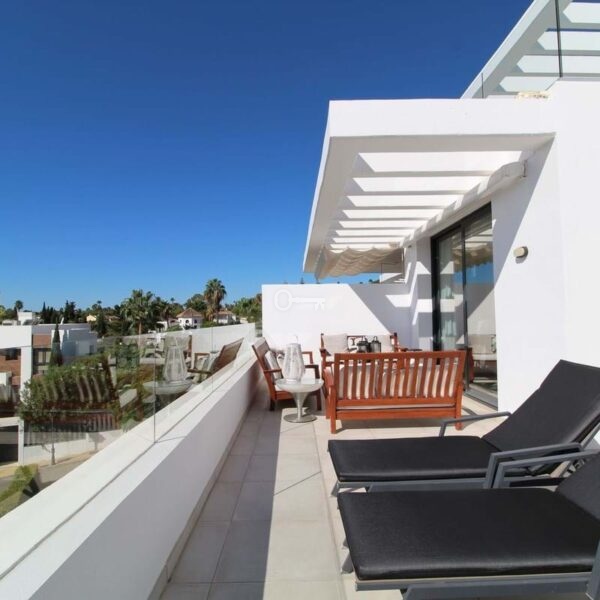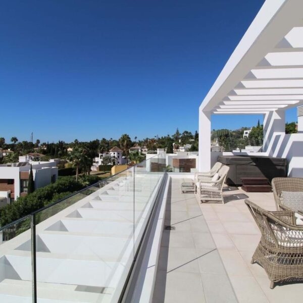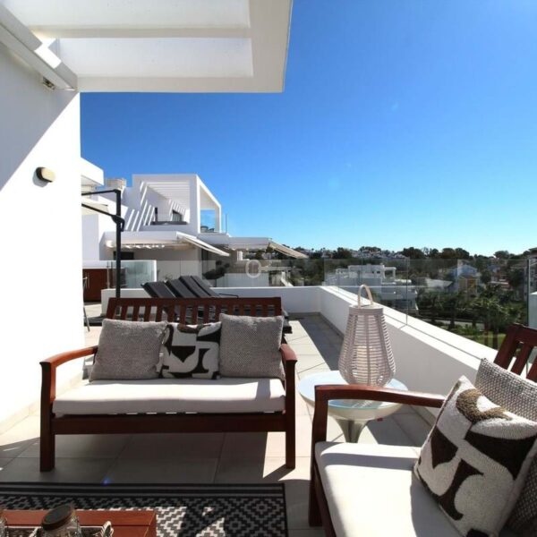 Położony w spokojnej, ale dogodnej lokalizacji, zaledwie dziewięć minut spacerem od restauracji, barów i supermarketów, ten wyjątkowy penthouse z trzema sypialniami od strony południowej oferuje rozległe widoki na Morze Śródziemne z prawie każdego pokoju i rozległych tarasów.