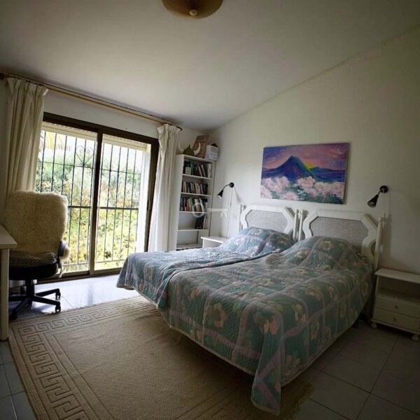 Z salonu można wyjść na słoneczny balkon z widokiem na bujną zieleń i urocze widoki na morze. Dwie spokojne sypialnie wyposażone są we wbudowane szafy, a dwie łazienki z wanną zapewniają komfort i bardzo praktyczny układ.