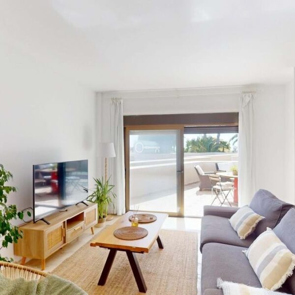 With a built area of 83 m² and a private terrace of 9.4 m², the apartment offers a comfortable and well-designed layout. It boasts elegant marble flooring and a modern fully fitted open-plan kitchen, seamlessly connected to a bright living area with direct access to the uncovered terrace.