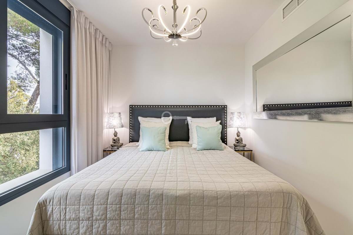 Nieruchomość obejmuje 2 sypialnie, obie z wbudowanymi szafami i 2 łazienki. Główna sypialnia posiada łazienkę i bezpośredni dostęp do tarasu. Z drugiej sypialni również roztacza się widok na ogród.