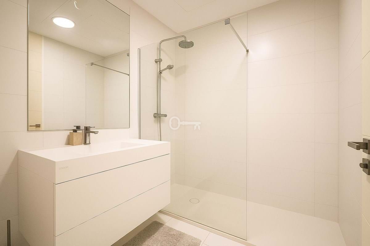 Na dolnym poziomie znajduje się przestronny salon z wyjściem na duży, słoneczny taras, elegancka kuchnia na otwartym planie z częścią gospodarczą oraz trzy sypialnie, w tym główna z łazienką i dwa pokoje gościnne dzielące nowoczesną rodzinną łazienkę. Na piętrze nieruchomość zachwyca wyjątkowo dużym tarasem na dachu, oferującym panoramiczne widoki na pole golfowe i morze od strony południowej oraz spokojne widoki na wspólny basen od strony północnej. Dogodnie usytuowany w kompleksie penthouse umożliwia łatwy dostęp do basenu bezpośrednio od strony wejścia do budynku. Dodatkowe udogodnienia obejmują klimatyzację i podziemne prywatne miejsce parkingowe oraz komórkę lokatorską. Ta ekskluzywna, zamknięta społeczność szczyci się pięknie zaprojektowanymi ogrodami, spokojnym odkrytym basenem, luksusową sauną i łaźnią parową, tradycyjną łaźnią turecką oraz eleganckim barem na świeżym powietrzu zaprojektowanym z myślą o wyrafinowanym wypoczynku i rozrywce.