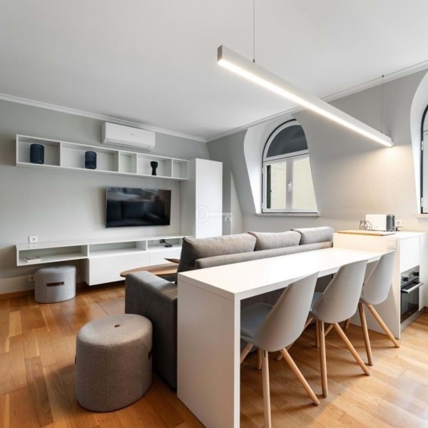 Niedawno odnowiony i położony na najwyższym piętrze uroczego budynku z windą. Jest to praktyczny apartament oferujący pełną prywatność.