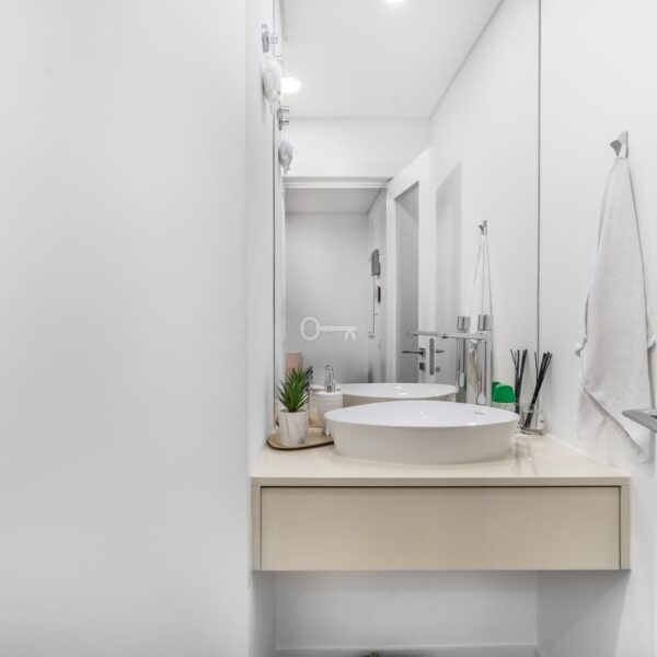 Apartament posiada również zamknięty garaż na dwa samochody, a także jedno dodatkowe zewnętrzne miejsce parkingowe na terenie kondominium.