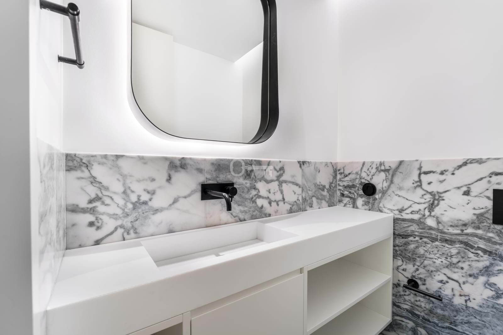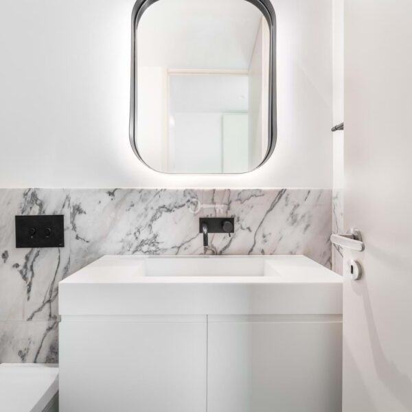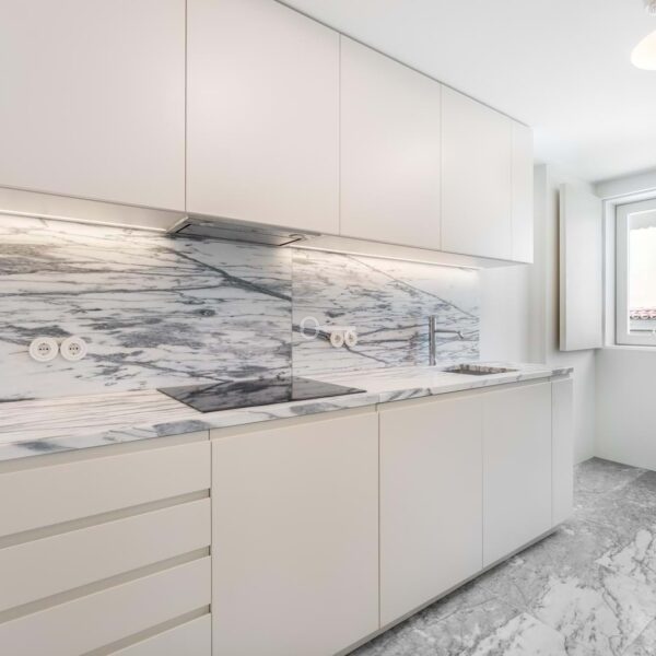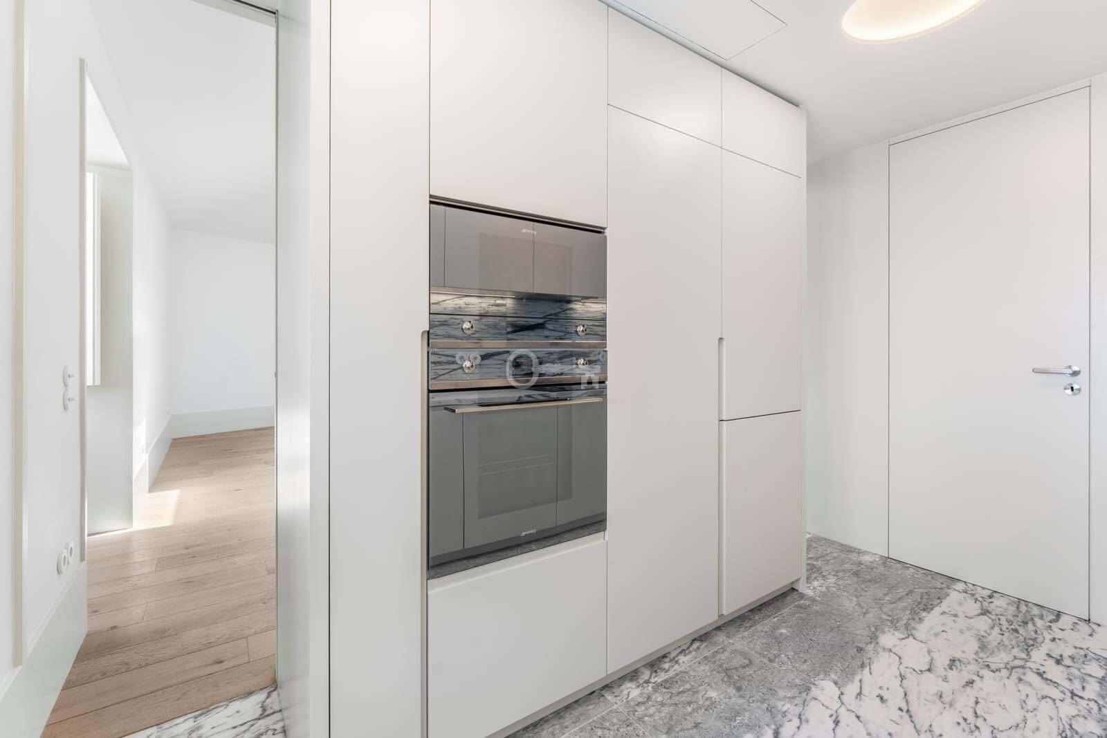– Integrated kitchens with lacquered finishes and Portuguese marble countertops