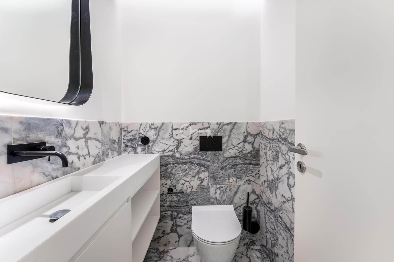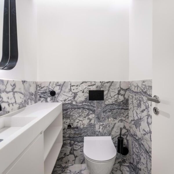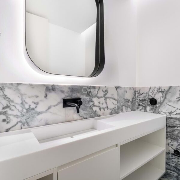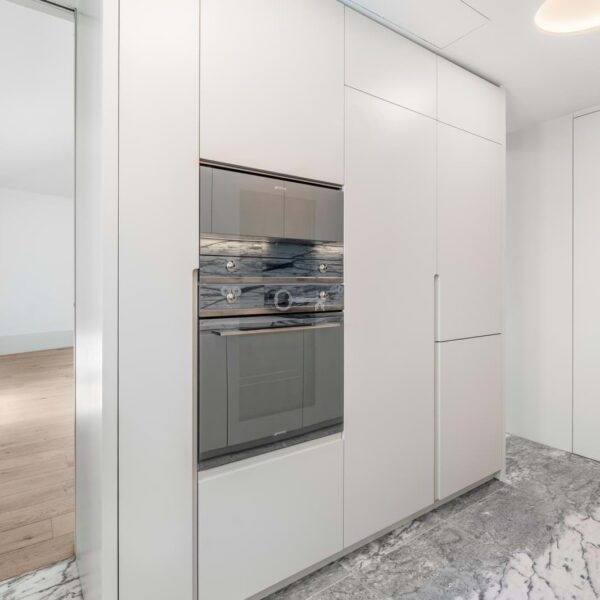 – Integrated kitchens with lacquered finishes and Portuguese marble countertops