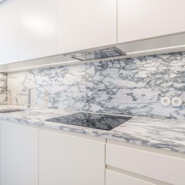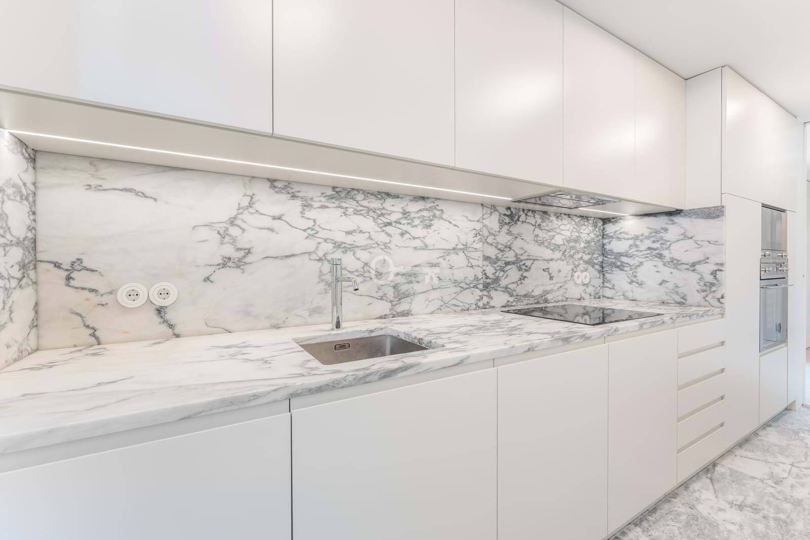 – Integrated kitchens with lacquered finishes and Portuguese marble countertops