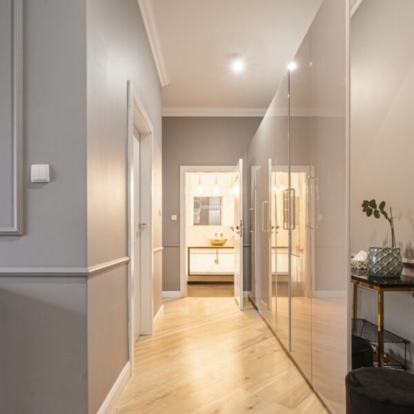 * hall: 12,25 m² – z funkcjonalnymi szafami w zabudowie.