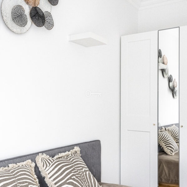 Apartament znajduje się na 2. piętrze w kameralnym, dwupiętrowym budynku Willa Joanna przy ul. Bartyckiej. Inwestycja z 2019 roku charakteryzuje się nowoczesną architekturą, jest monitorowana i wyposażona w cichobieżną windę.