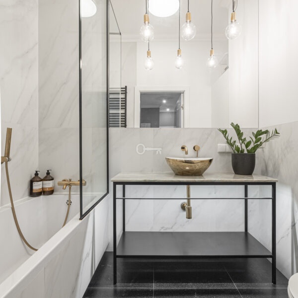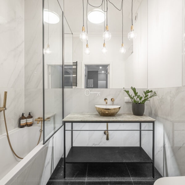 * łazienka: 3,70 m² – wykończona w wysokim standardzie,
