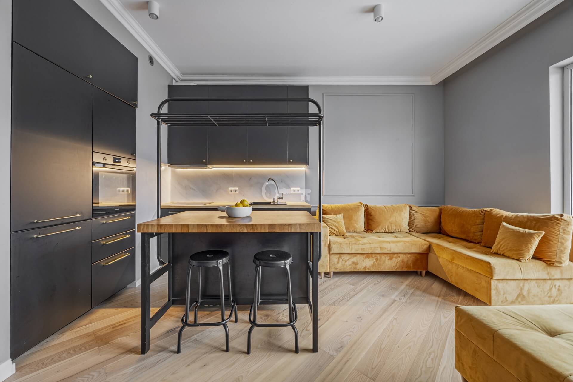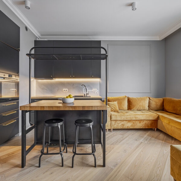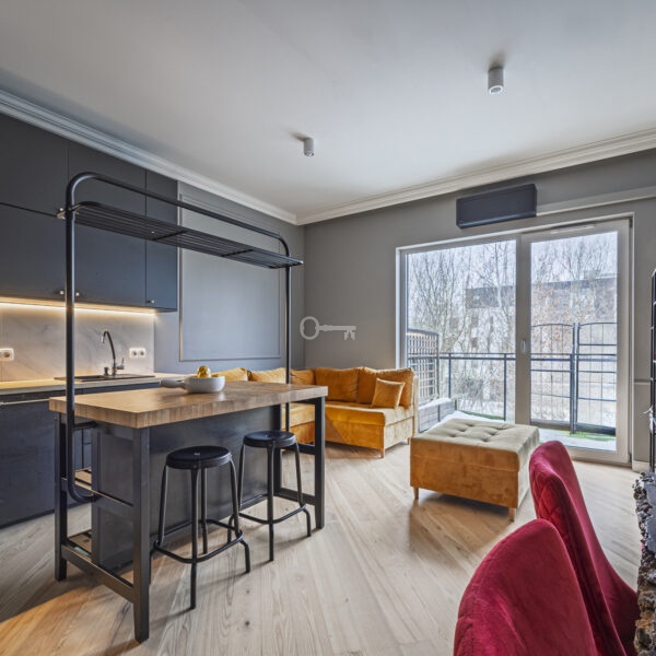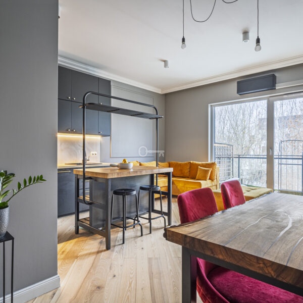 To wyjątkowe mieszkanie o powierzchni 63,52 m² łączy w sobie nowoczesny design z domowym ciepłem. Sercem apartamentu jest przestronny salon połączony z aneksem kuchennym (22,07 m²).