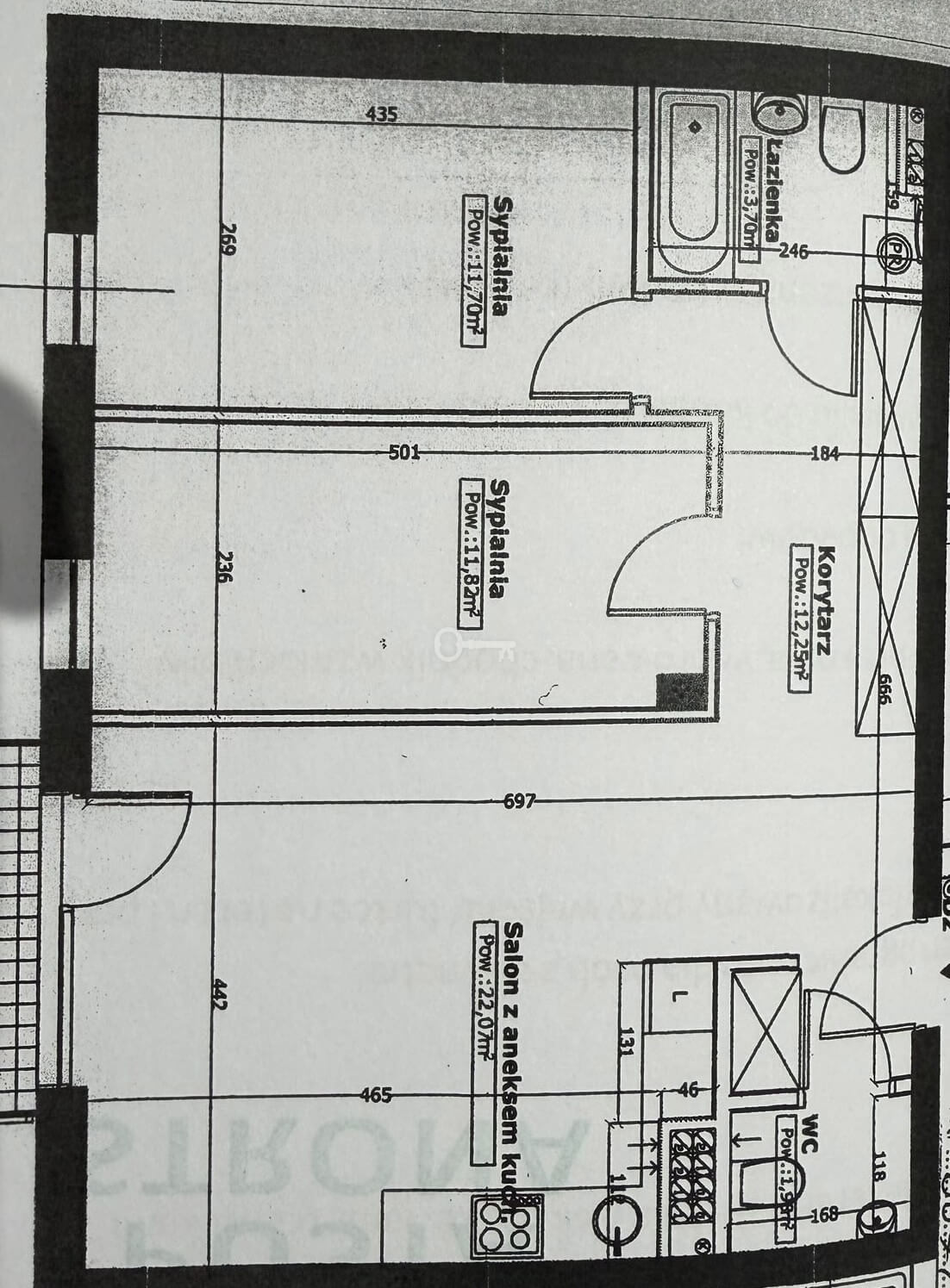 * Salon z aneksem kuchennym: 22,07 m² – idealna przestrzeń do wspólnego spędzania czasu,