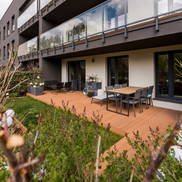 Dzięki zachodniej ekspozycji mieszkanie jest doskonale doświetlone, a klimatyzacja w salonie zapewnia komfort termiczny nawet w najbardziej słoneczne dni. Dodatkowym atutem jest balkon (5,22 m²), stanowiący naturalne przedłużenie strefy wypoczynkowej.