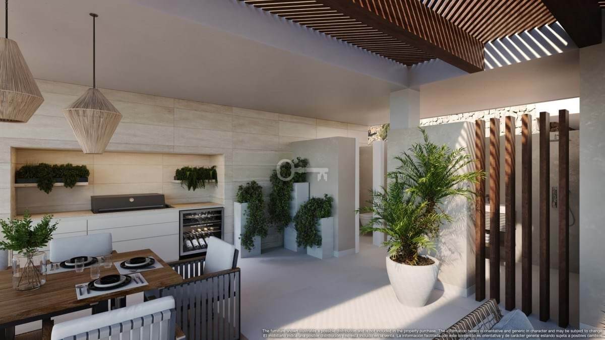 Wspaniałe ogrody willowe na parterze zbudowane na dwóch piętrach z częścią rekreacyjną pozwalającą na zagospodarowanie ich jako biura, siłowni, kina, pokoju gier, sauny lub dowolnego innego zastosowania, które dumni właściciele zdecydują się nadać; przestronne apartamenty na pierwszym piętrze z dużymi tarasami i nasze luksusowe super penthousy na najwyższym piętrze. Każdy dom ma własny prywatny basen, oprócz dużych basenów komunalnych.