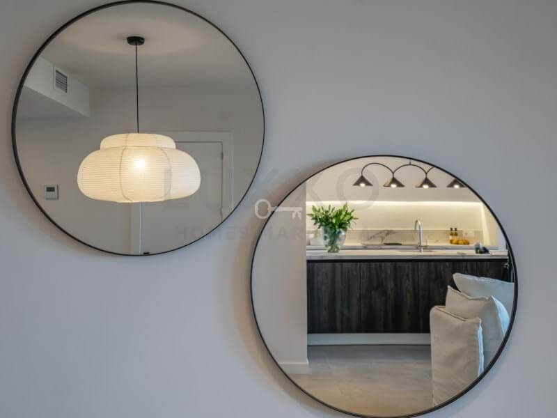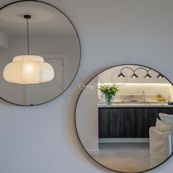 The apartment has been thoughtfully redesigned to maximise space and natural light, creating an exceptionally wide and spacious living area with a bright and open feel. The living room is stylishly finished and features a large TV screen and a cosy fireplace, making it the perfect place to relax and unwind.