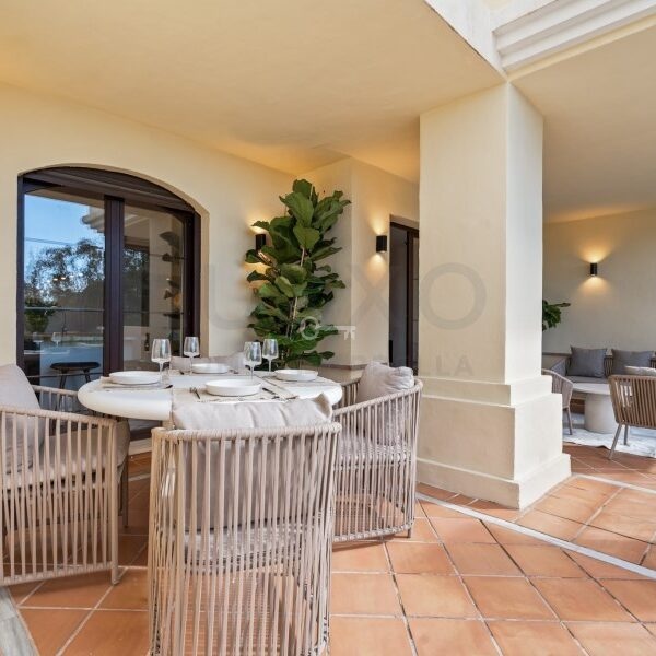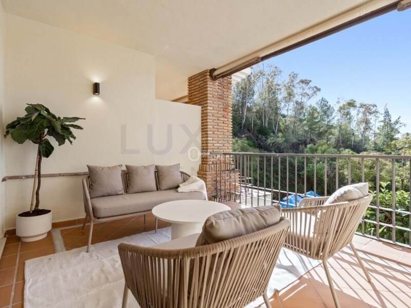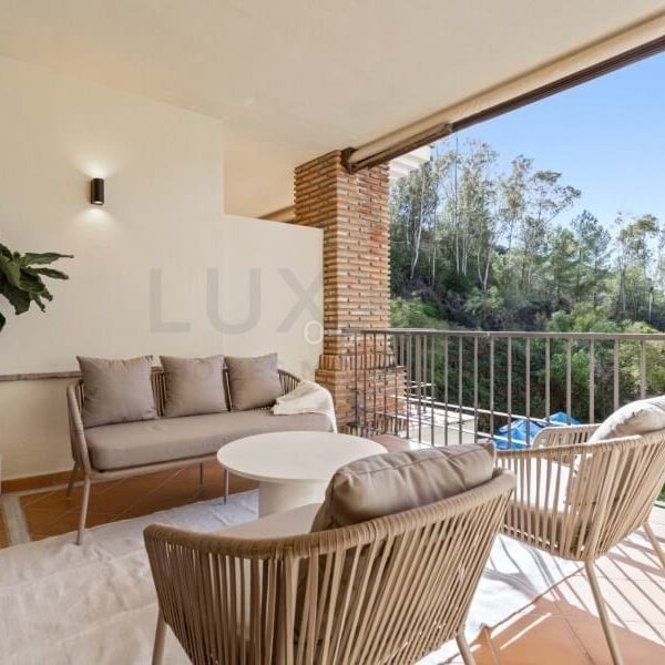 Welcome to Las Jacarandas, a beautifully fully renovated apartment located in the exclusive Los Arqueros urbanisation in Benahavís. Here you enjoy peace, comfort and luxury living, while still being perfectly connected to main roads and all nearby amenities. Within just 10 minutes you can be at the beach and the sea.