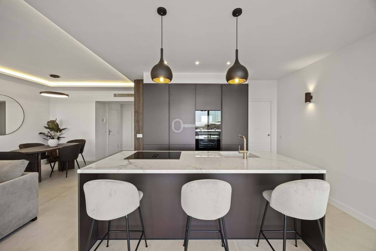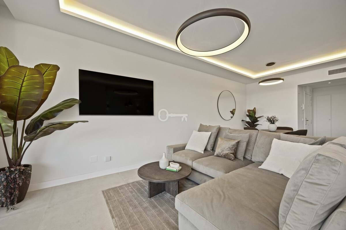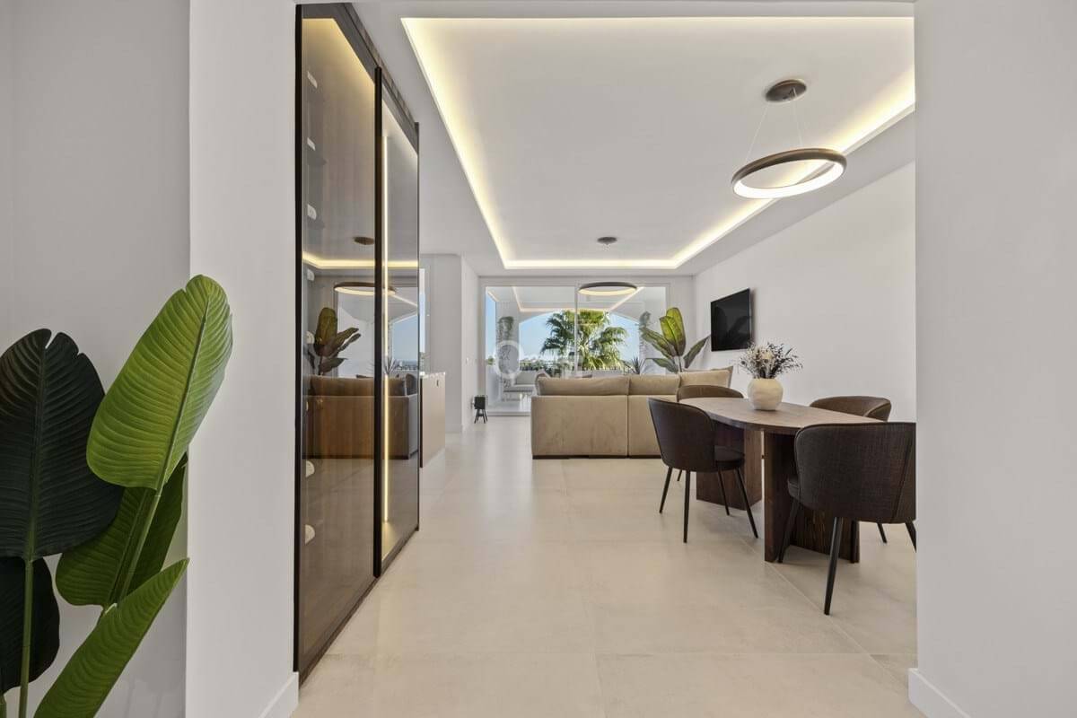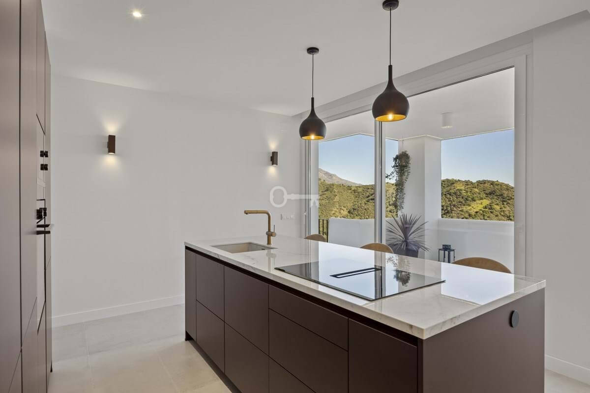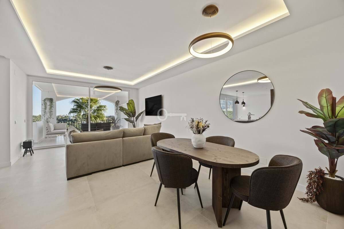 Positioned within the elevated residential enclave of Altos de La Quinta in Benahavís, this three-bedroom apartment combines generous proportions with open views across sea, mountain, and landscaped surroundings. Originally constructed in January 2005 and scheduled for renovation in 2025, the property offers an updated interpretation of contemporary Mediterranean living within a secure gated community. Its south-east orientation captures morning light while maintaining a calm and temperate interior atmosphere throughout the day.