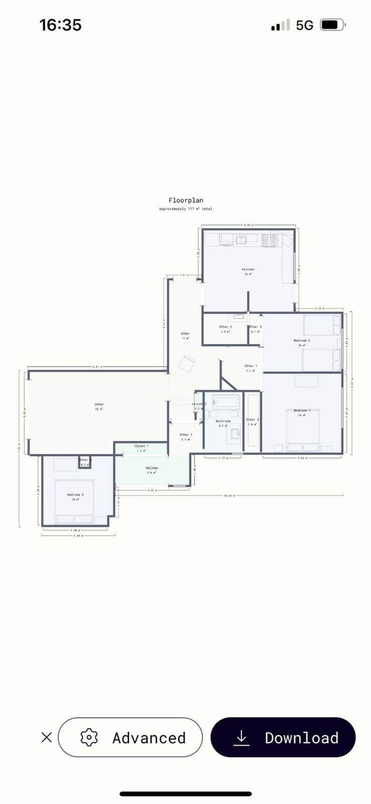 Please note: the images of the living room and kitchen have been enhanced using AI to illustrate the potential of the space in terms of design and atmosphere. The bedrooms are shown as they are in reality.