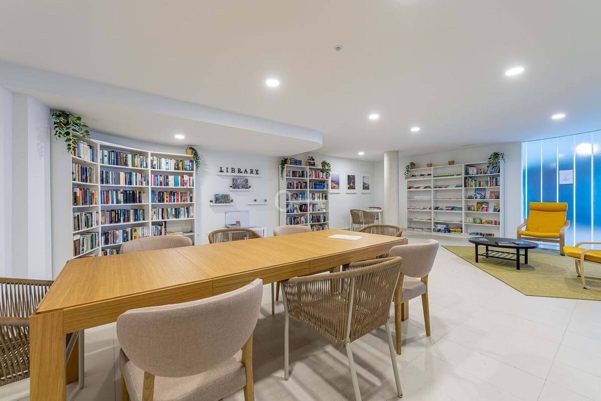 The heart of the home is the spacious living room with open-plan kitchen, a contemporary and functional space equipped with Siemens appliances and a Silestone countertop, ideal for both everyday living and entertaining.
