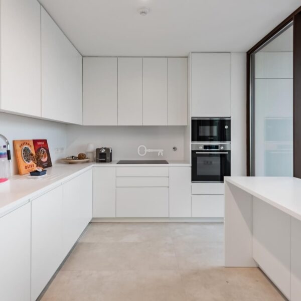 W pełni wyposażona kuchnia połączona z salonem, z dostępem do balkonu o powierzchni 16 m²