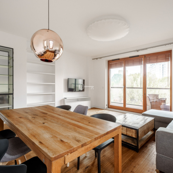 Apartament położony jest w jednej z najbardziej zielonych i spokojnych części Mokotowa, przy ul. Bernardyńskiej. To doskonałe miejsce dla rodzin, które cenią sobie zarówno dostęp do natury, jak i komfort miejskiego życia. W pobliżu znajduje się malowniczy Park Arkadia oraz rozległe tereny zielone wzdłuż Jeziorka Czerniakowskiego – idealne na spacery, bieganie czy wycieczki rowerowe.