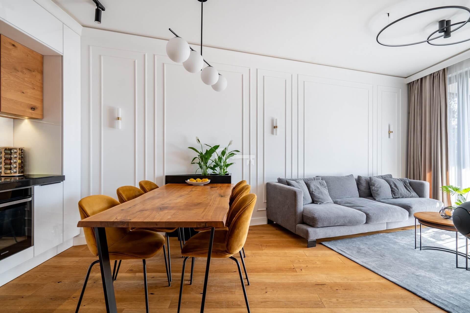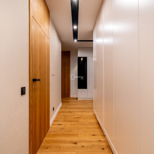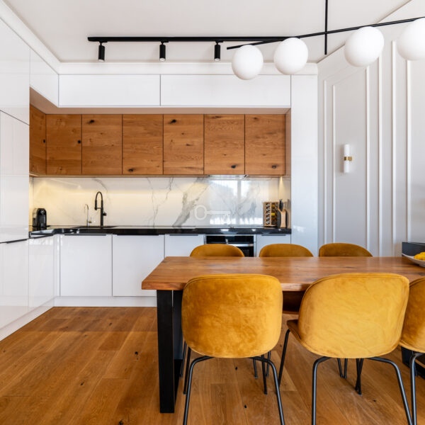 * Wysokiej jakości deska dębowa na podłogach w całym apartamencie