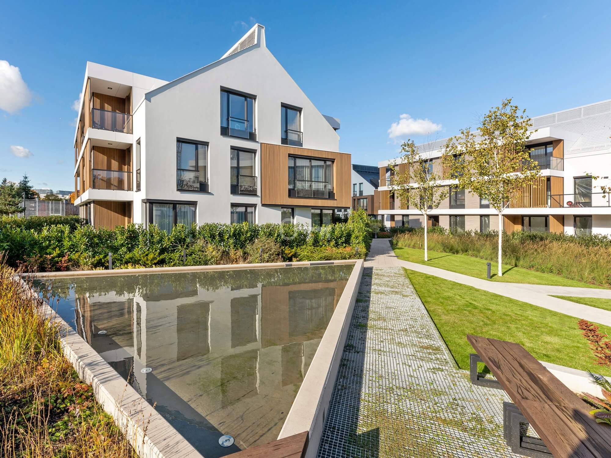 * Tereny spacerowe z oczkami wodnymi i starannie zaprojektowaną roślinnością.
